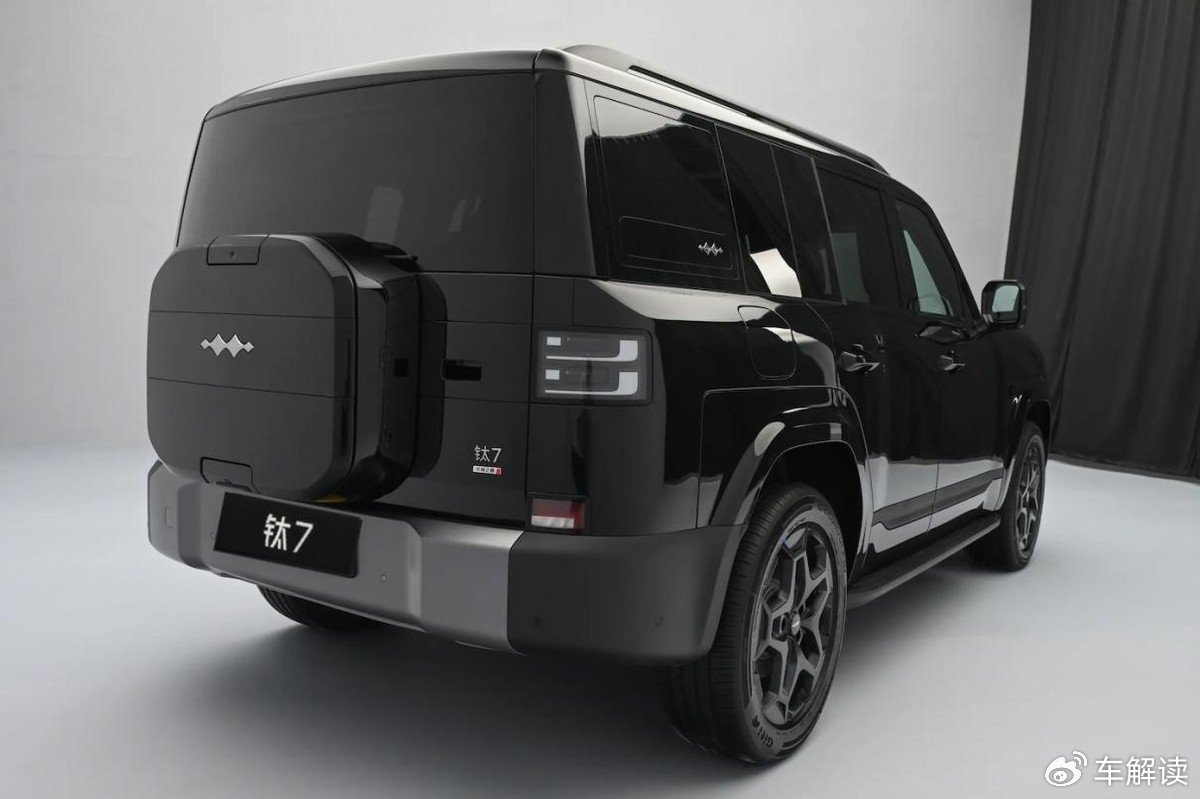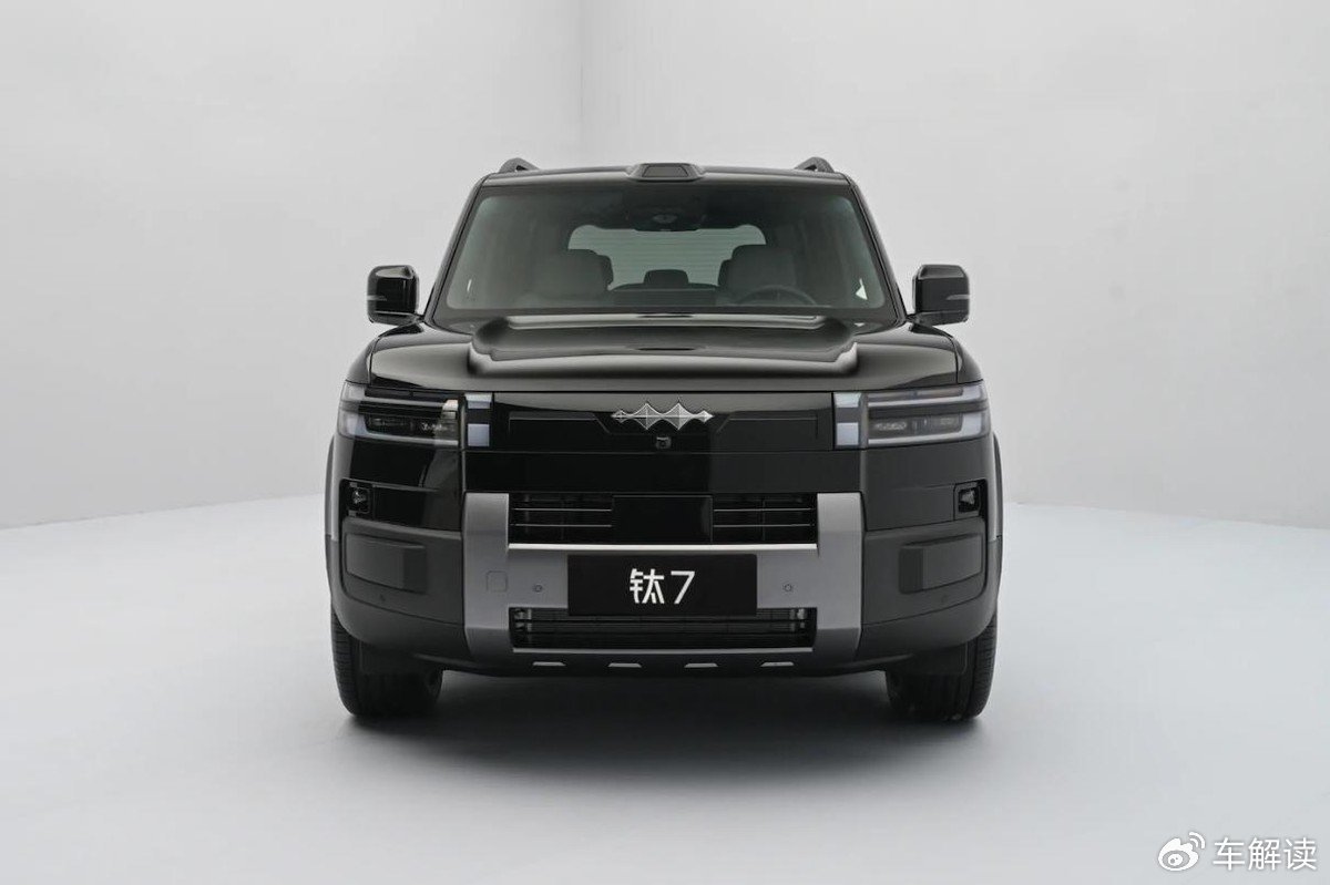 尺寸方面,鈦7長寬高分別為4999/1995/1865mm,這比例放在中大型SUV里不是特別修長的那種,但跟硬派越野車倒是挺契合的。而且像2920mm的軸距雖然相對保守,但卻能一定程度上優化車輛的通過與控制能力。關鍵在于,車輛本就是一臺雙排5座布局的車型,有這樣的長軸比例其實空間已經夠了。